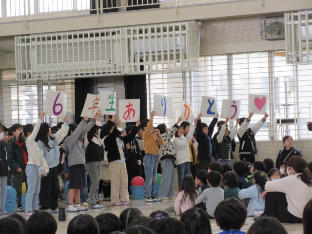 これまで学校のリーダーとして多くの場面で活躍してきた6年生に、学校のみんなで感謝の気持ちを伝える場となりました。