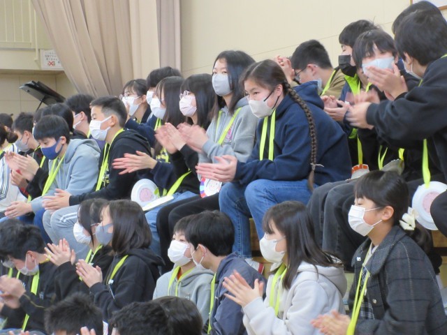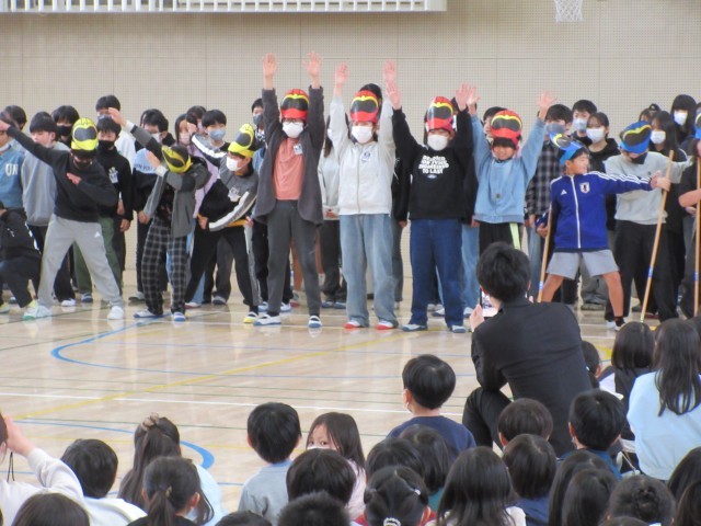 また、先生たちからはサプライズの出し物もあり、体育館は大きな拍手と笑顔に包まれました。そのサプライズに応えるように、6年生も立派な態度で受け取り、在校生に向けて感謝の気持ちを伝えてくれました。