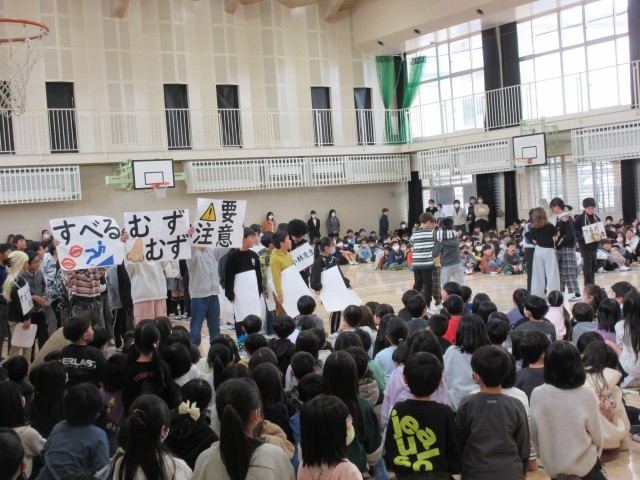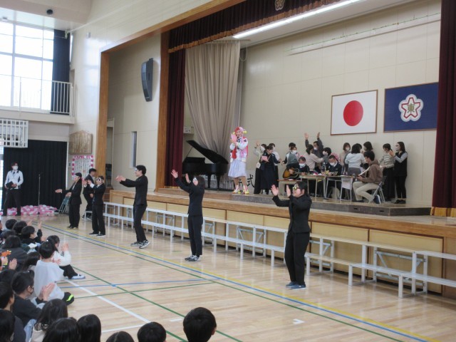 各学年からは、心のこもったお祝いのメッセージや寸劇、歌声など、6年生への思いがあふれる温かい出し物が届けられました。どの学年の子供たちも、「ありがとう」の気持ちを精一杯表現する姿が輝いていました。