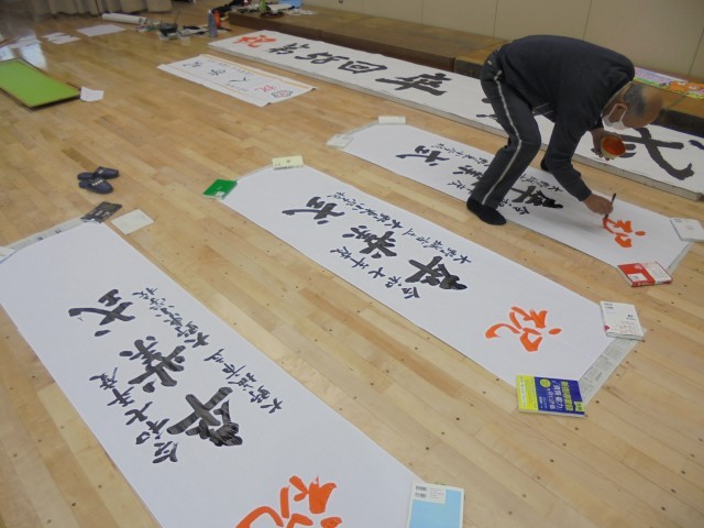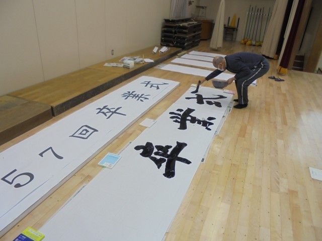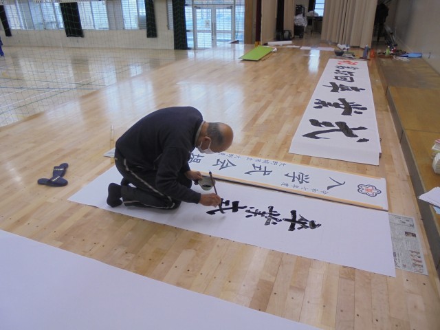 本年度の卒業式に向けて、元校長であり、本校に勤務経験があられる 東 和男先生に、体育館に掲げる「卒業式」の題字および立て看板の文字を力強い筆文字で書き上げてくださいました。