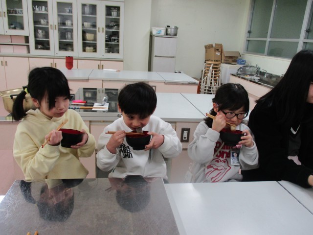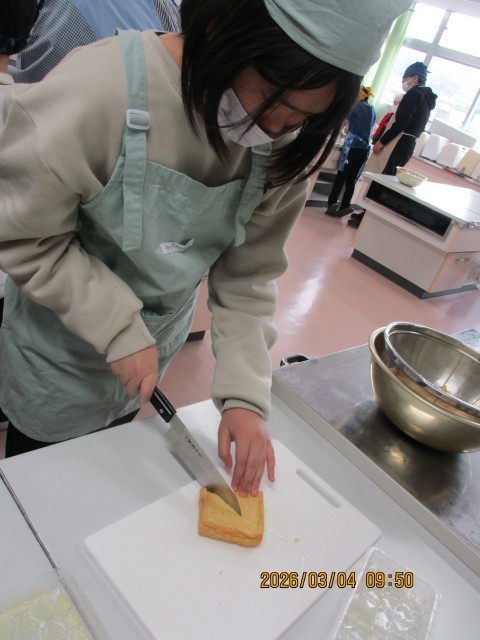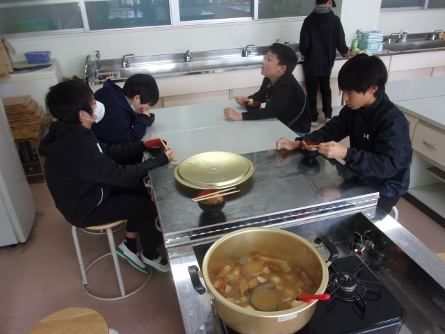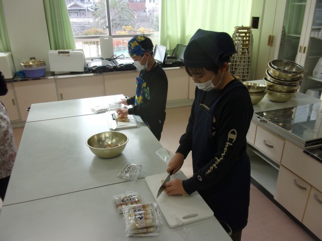 おでんを作るために、大根を切るクラスやだし汁を作るクラス等、学級ごとに分担して調理を行いました。