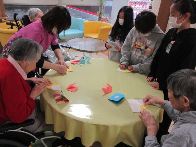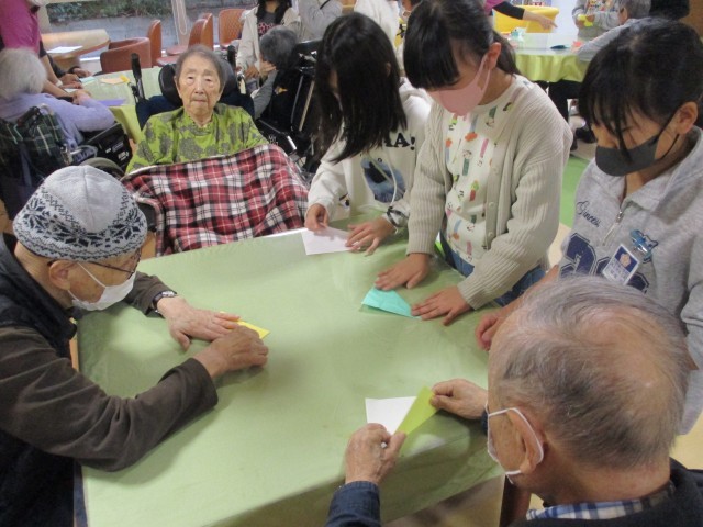 4年生がラナシカ乙金を訪問しました。 1組は折り紙、2組は歌、3組は昔遊び、4組は体操と、各クラスごとに工夫した活動をラナシカのみなさんと一緒に楽しみました。