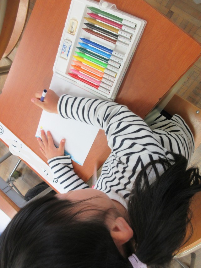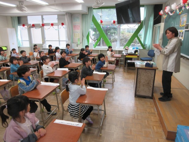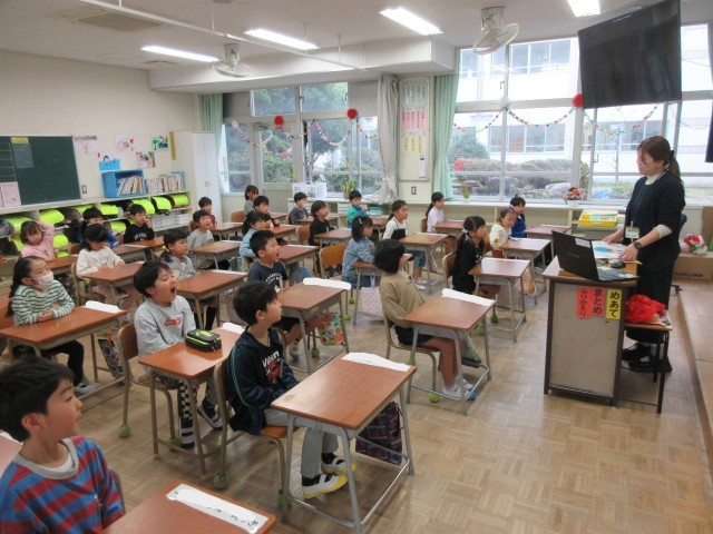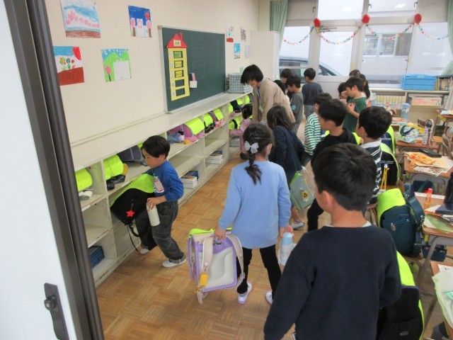 登校初日の一年生。ドキドキの一日目ですね。真新しい筆箱に、新しく長い鉛筆、奇麗に色がそろったクーピーに真っ白な自由帳。すべてがピカピカです。今日は初日なので、ランドセルのしまい方、引き出しの中の道具の入れ方、廊下の歩き方、トイレの使い方などを学んでいました。しっかり担任の先生のお話を聞いて学んでいました。新しい環境にドキドキわくわくで「嬉しい!」「早くお勉強したい!」と、意欲満々の一年生のキラキラした表情がとてもかわいかったです。