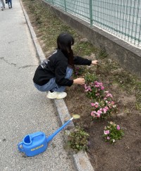 朝の見守りから帰ってくると、玄関の花壇で、6年生の村上さんが草取りをしてくれてい...