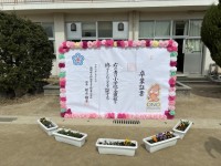 卒業式当日、運動場に巨大な卒業証書が登場しました。オヤジの会の皆さんが卒業生のた...