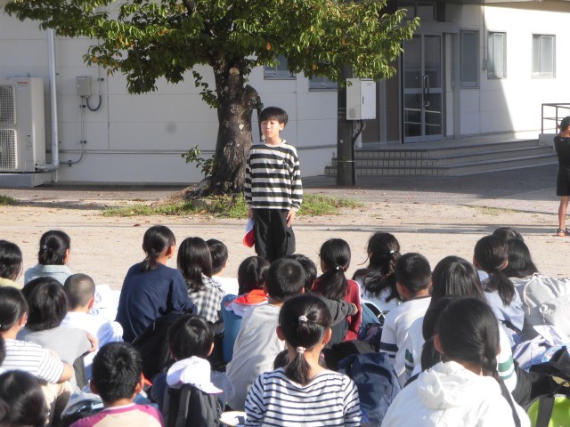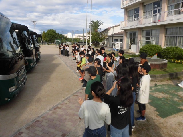 本日(9/24)、晴天の中、自然教室「出発式」を行いました。