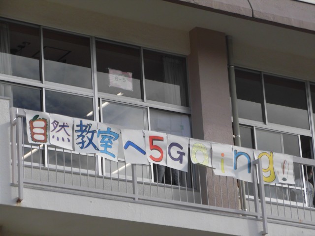 校舎の3階には「自然教室に5Going!」と書かれたメッセージも飾られていました!