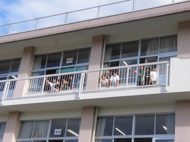 校庭や校舎には、たくさんの大利っ子や保護者の方が見送りしていました。