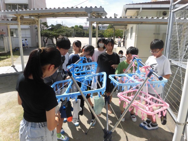 6年生の家庭科では、「洗濯」を行いました。