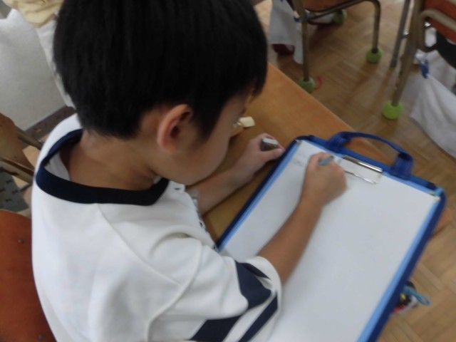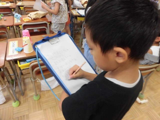 しっかりと自分の感想を書き込む子と自分の作品の良さを伝える子。