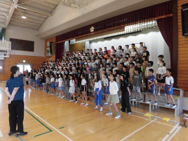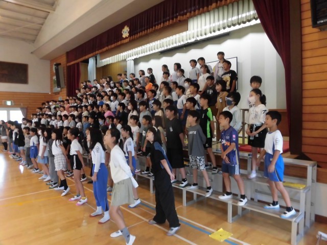 4年生も、体育館でハーモニー発表会に向けての練習を行っていました。