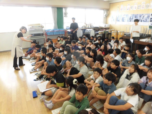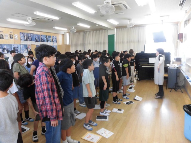 5年生は、音楽室でハーモニー発表会に向けての練習を行っています。