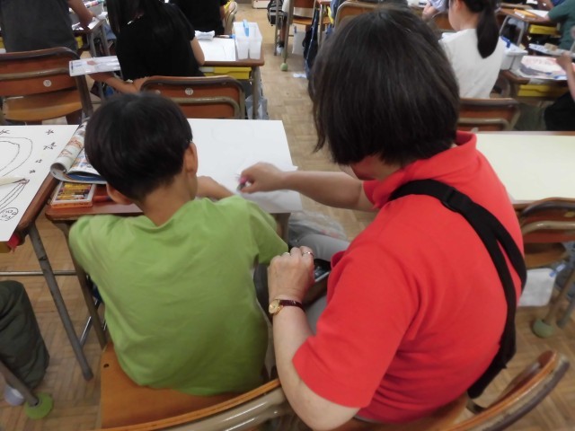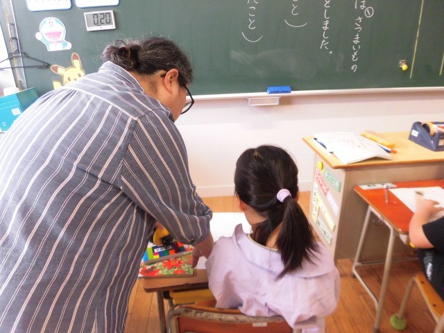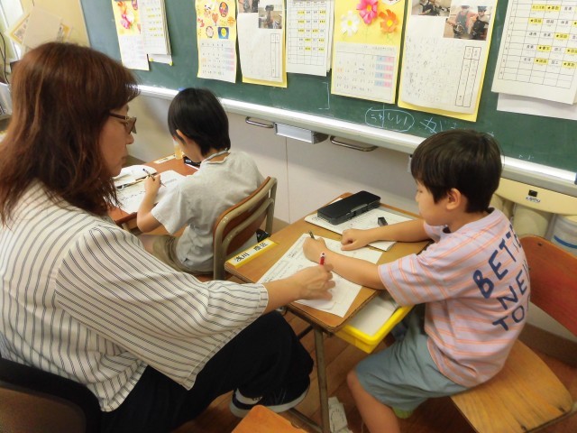 交流学級でも、学習ない世に応じて支援員の先生が付いて支援を行っています。