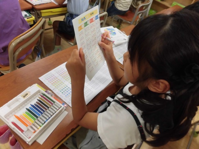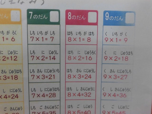 かけ算九九の表を見ながら、子どもたちは一生懸命8の段を覚えていました。