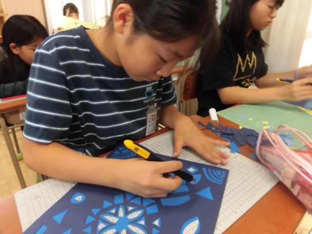 6年生は図画工作科で、カッターを使った切り絵のような学習を行っています。
