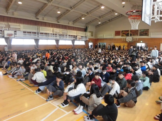 1000名を超える児童が集まるため、体育館は子どもたちで埋め尽くされますが、私語がなく、落ち着いた雰囲気を作り出すことができていました。
