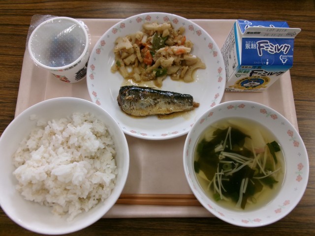 麦ごはん 牛乳 いわし生姜煮 煮合い お吸い物 納豆