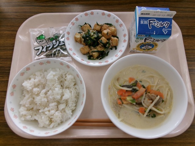 麦ごはん 牛乳 ごまみそラーメン 厚揚げの炒め物 ミニフィッシュ