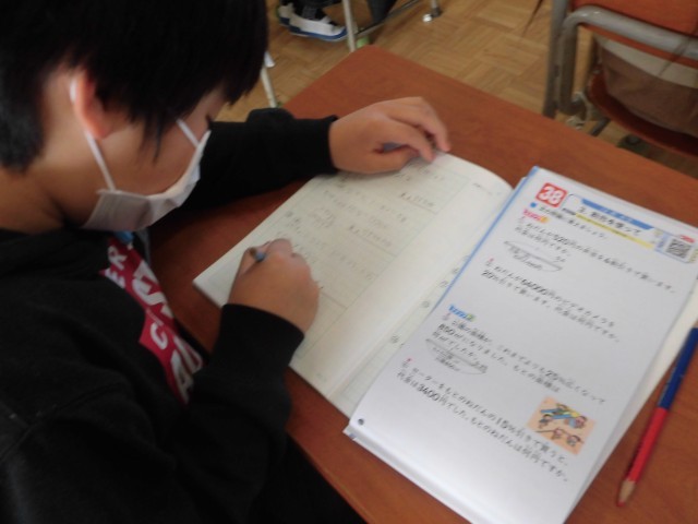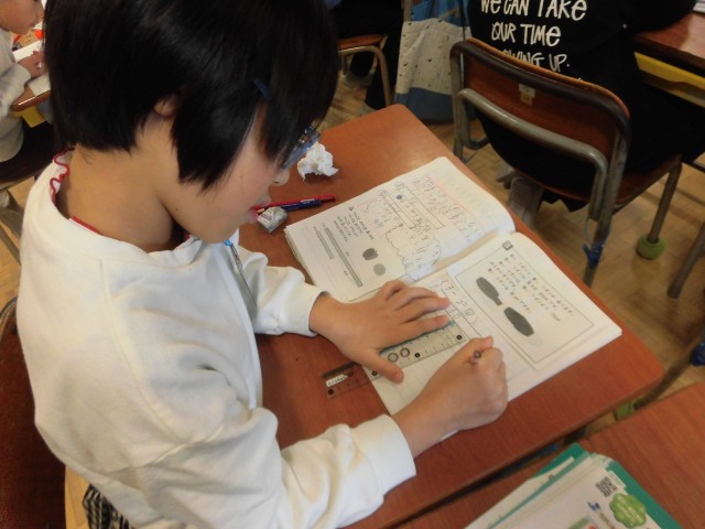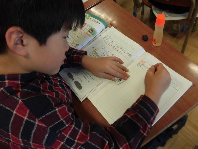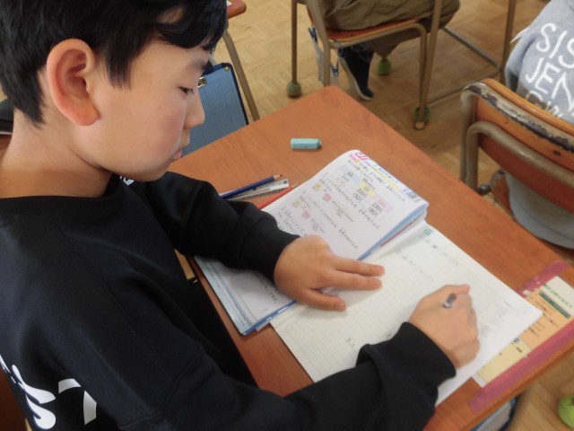 子どもたちは、ノートに図化しながら、これまでの長さの学習やひき算の学習を振り返りながら、問題を解いていきました。
