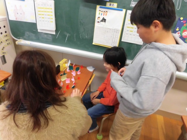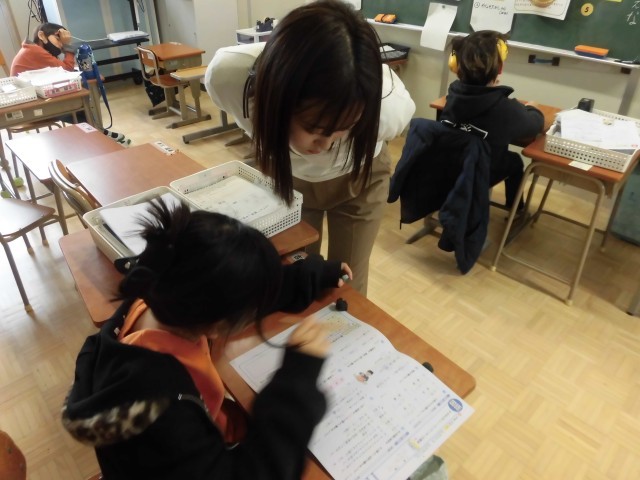各学級をのぞいてみると、マンツーマンで学習に臨んでいたり、クールダウン中で教師と子どもが楽しい活動を一緒にしていたり、テストを解いていたり…と様々な活動が行われていました。