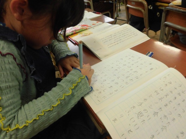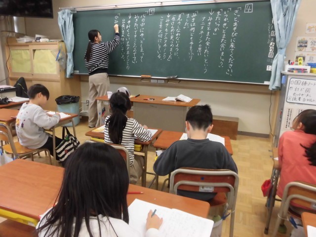 子どもたちは、先生の言うことをしっかりと聞いて、静かにノートに場面を写していました。