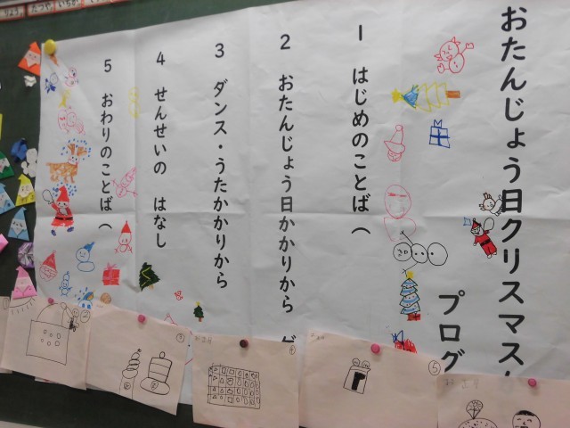 黒板には、子どもが描いた6枚の絵がはられていて、それらが何を表しているのかを当てるゲームです。