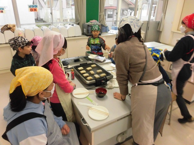 子どもたちの活動の様子を見てみると、マンツーマンで学習テストや漢字学習をしたり、調理実習(お餅を焼いて自分の好きな食べ方で食べます)をしたりと楽しく活動していました。