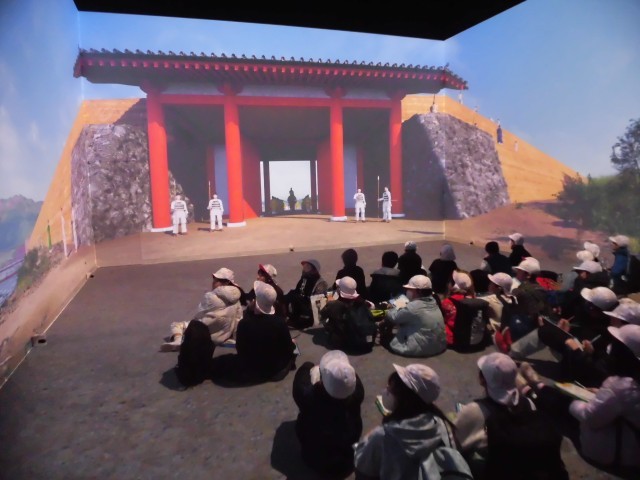 特に、部屋一面がスクリーンとなって動画で日本の歴史(主に奈良時代から平安時代にかけての大宰府の様子)を説明するコーナーでは、子どもたちは目を輝かせながら見入っていました。