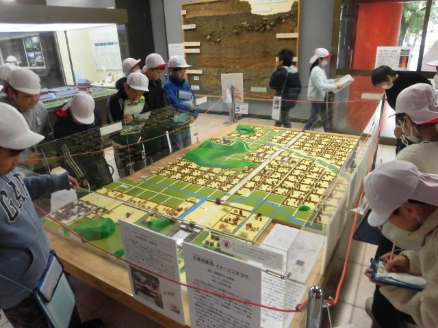 九国では、日本の歴史の時代の移り変わりを、発掘された展示物を見学しながら学んでいきました。