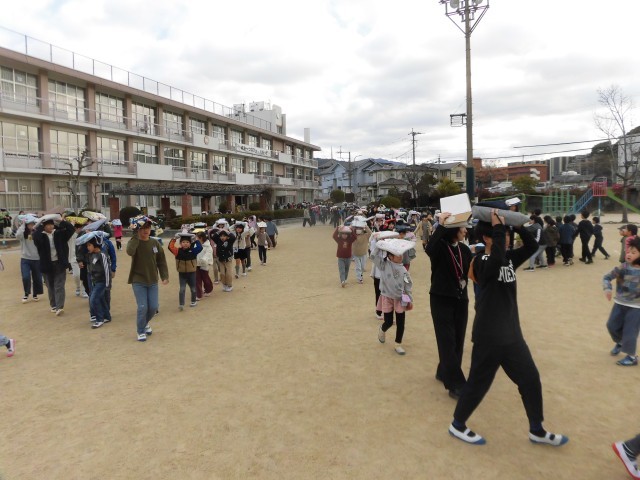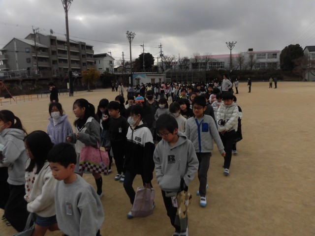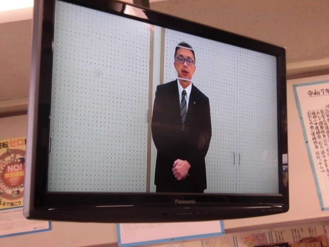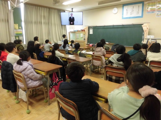 大変寒い中での訓練でしたので、児童の安全、及び、人数確認を終えたのち、すぐに教室に戻り、テレビ放送で「校長先生からのお話」を受けました。