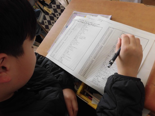 6年5組では、卒業式の「別れの言葉」のセリフ決めを行っていました。