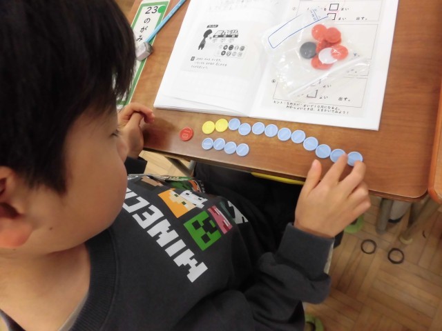 今日は、お金(教材)を使って、大きい数を表していきました。