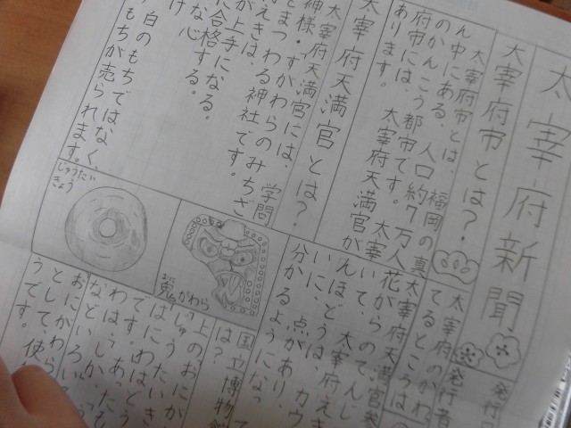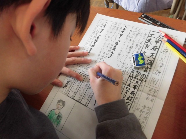 4年生の社会科では、太宰府市への社会科見学をまとめる新聞づくりを行っています。