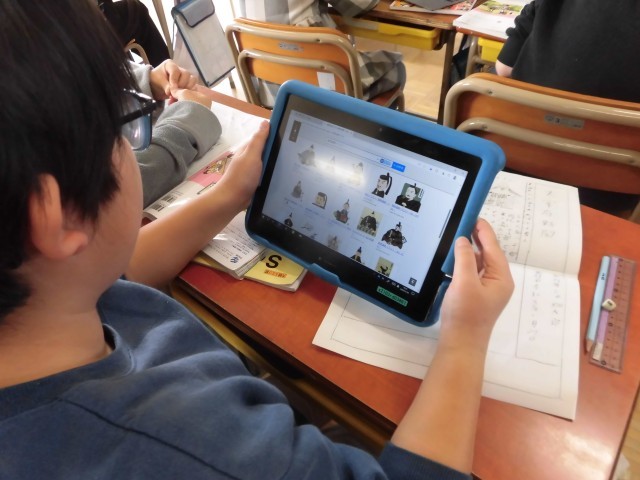 タブレットを活用して調べたり、持参した資料を活用したりと、子どもたちなりに工夫してまとめていました。