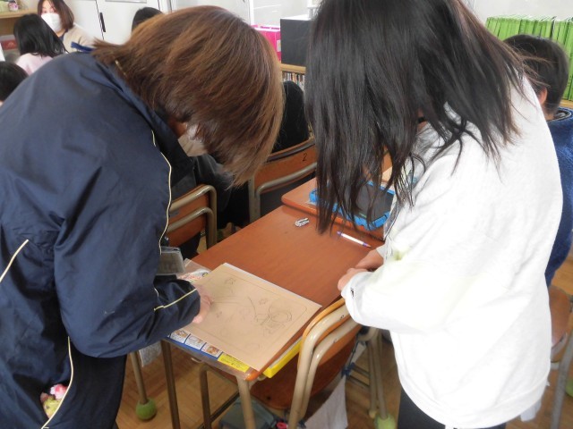 難しく悩みこむ子もいましたが、担任の妹川先生がアイデアをヒントとして与えていきます。