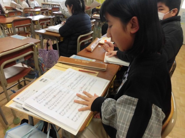 5年生の音楽科では卒業式やお別れ集会で歌う楽曲の練習を行っています。