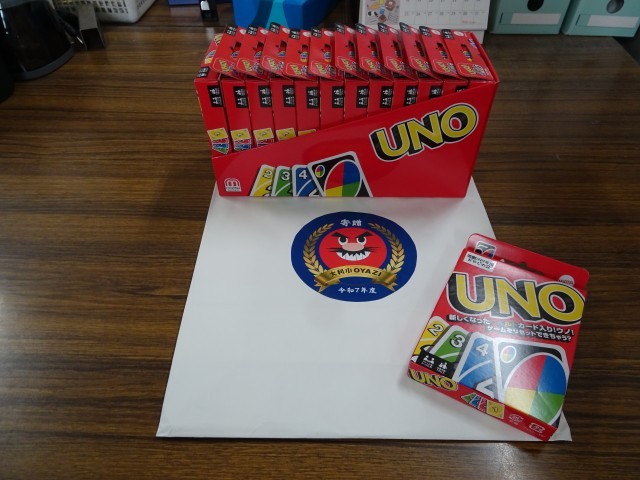 今年度は各教室に「UNO」をいただきました。数がそろっていなかったり、破損したりしているものもあったので、休み時間に子ども達が楽しく遊べそうです。