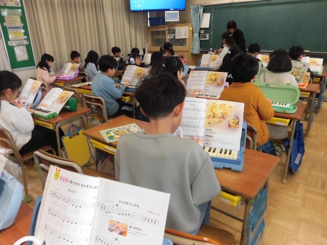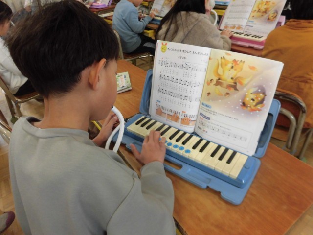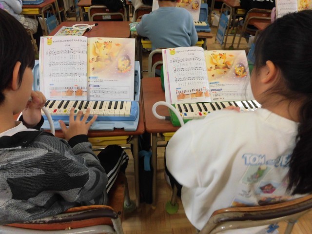 のぞいてみると、子どもたちが鍵盤ハーモニカを演奏しています。
