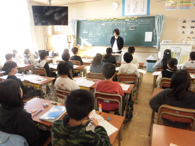 5組では、練習問題をノートに書き込み、問題を解いています。