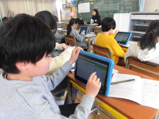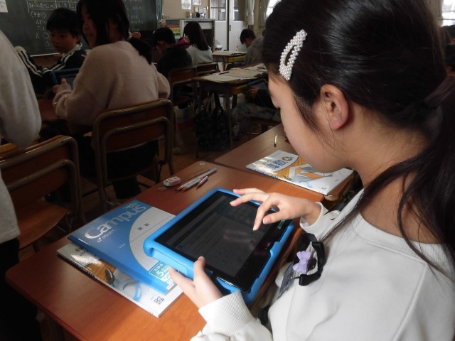学習の終わりには、練習問題をタブレットを使って解き進めていました。