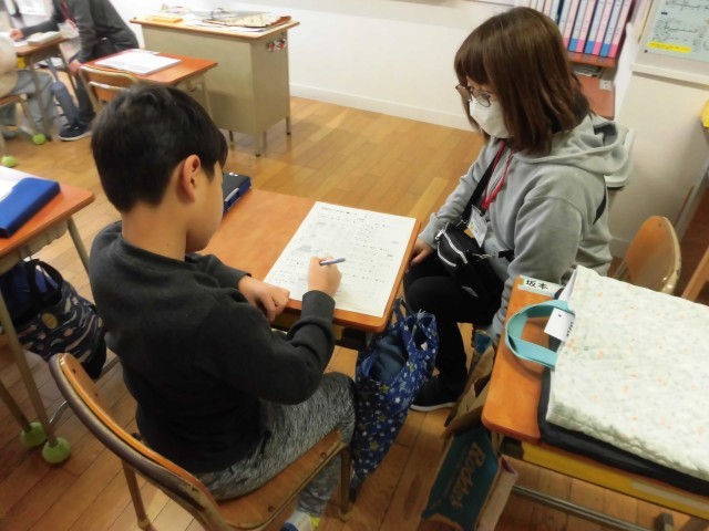 今日は、算数や国語など、マンツーマンで指導を受けていました。