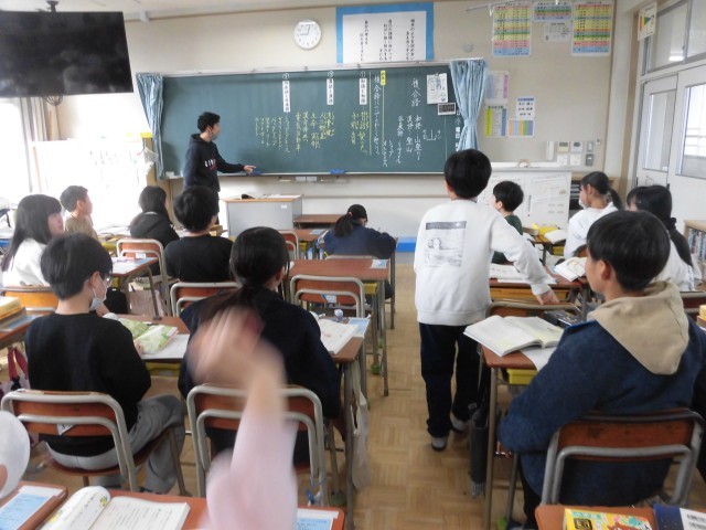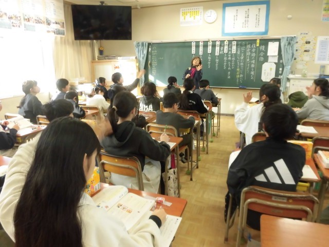 今日、5年生の国語科「複合語」を全担任がクラスを入れ替えて実施しました。
