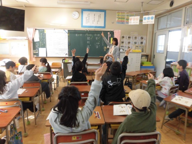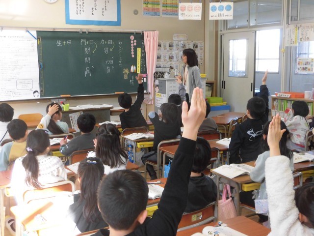 子どもたちは、組み合わせてできる漢字を見つけては、楽しそうに発表していきました。