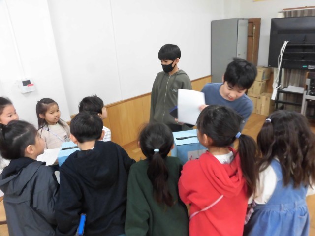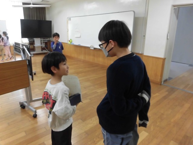 放送委員会が企画した1年生と6年生との交流が、昼休みに大利っ子ルームで行われまていました。