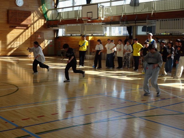 大利小おやじの会と下大利小こぶしの会合同で、6年生の卒業のお祝いも兼ねて、下大利小との交流イベントが21日、大利中学校の体育館で開催されました。オープニングは大利中吹奏楽部による生演奏♪軽快な曲に合わせて子ども達のテンションも上がってきました(*^_^*)「お玉で運べ!ピンポン!」や「大冒険!サバイバルレース」など、大利中の広い体育館の中を駆け回りました。ラストはおやじと大利小ジェントルマンの「逃走中」!子ども達のしなやかな走りに・・・ジェントルマンの足はちょっとミルクねじりパンのように・・・(^^;)いやいや、颯爽とした走りで次々と子ども達を捉えていました♪