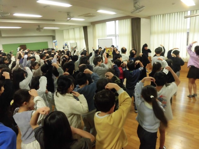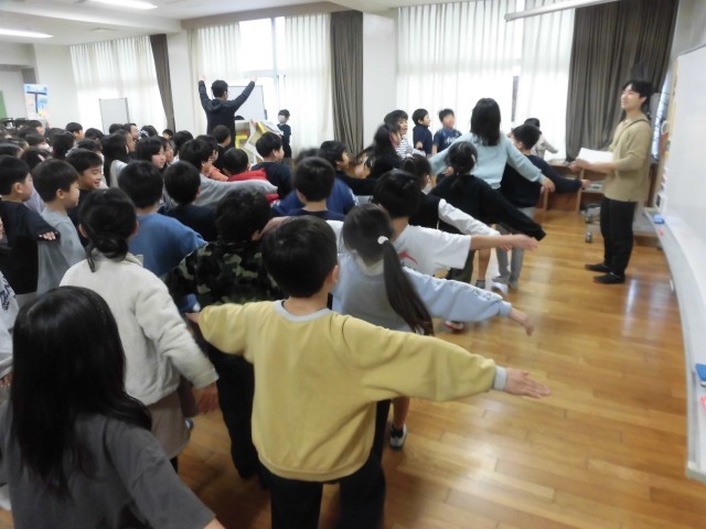 代表児童とその他の児童では役割(動きや声)が違っているようですが、息をあわせて見事に時間内に表現していました。