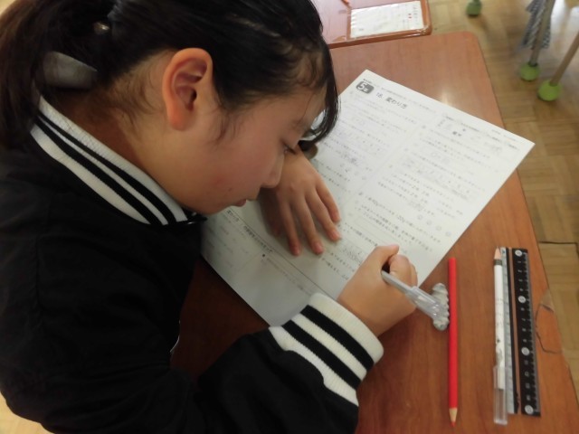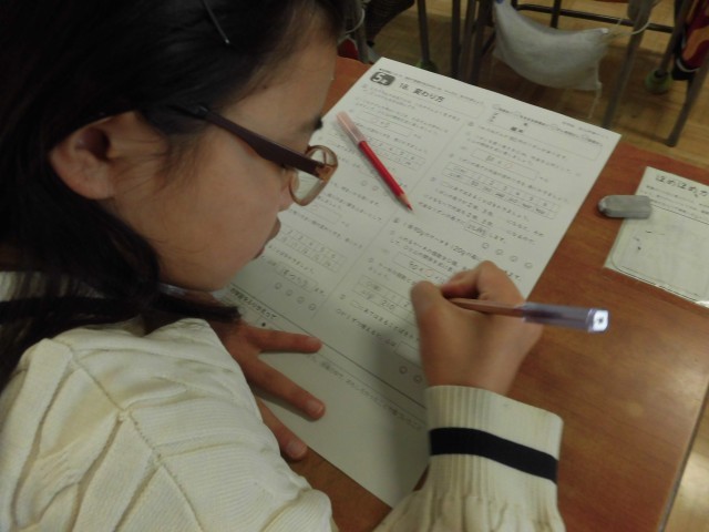 子どもたちは、用意された学習プリントを使って、問題をどんどん解いていきます。