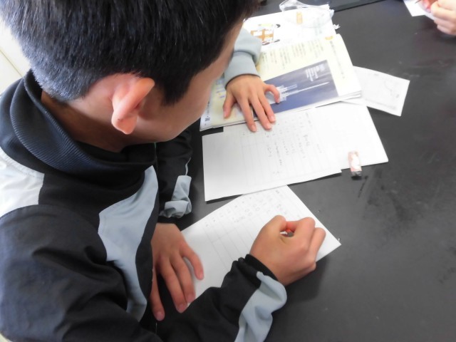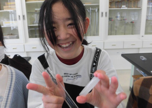 実験終わりに理科室に入ったので、子どもたちの実験中の様子は見れませんでしたが、試験管から取り出したキンキンに冷えた氷を子どもたちは「冷たーい」と言いながら「笑顔」で見せてくれました。