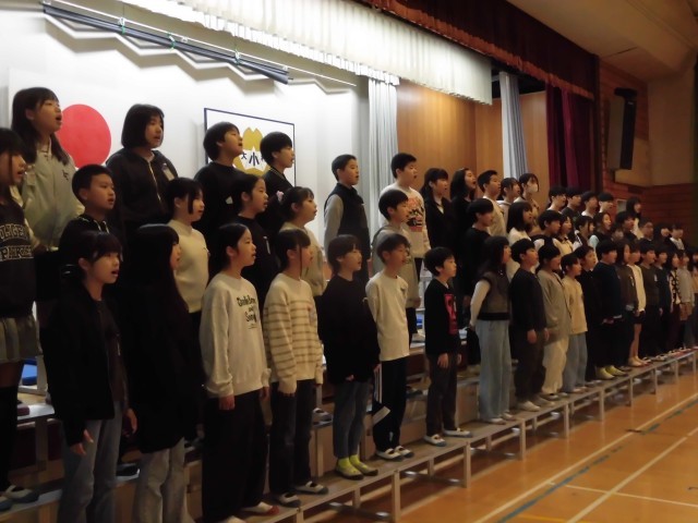 6年生が卒業式の練習で使っているひな壇を使い、見事な歌声を響かせてくれました♪