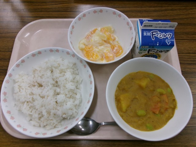 ビーフカレー(麦ごはん) 牛乳 フルーツヨーグルト